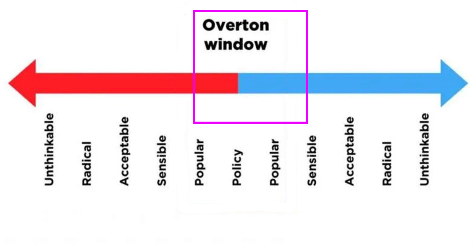 There is a war raging every day to shift the cultural mean into a given direction and thereby tilt the world of acceptable ideas. Defining this space of ideas, creates opportunity to take actions that are going to be seen as legitimate by a majority of people. And so controlling the world of ideas creates power over the physical world. The cultural meme spectrum (fancy for world of ideas) that is acceptable by the majority of people is called the Overton Window and this post is dedicated to exploring its evolution.